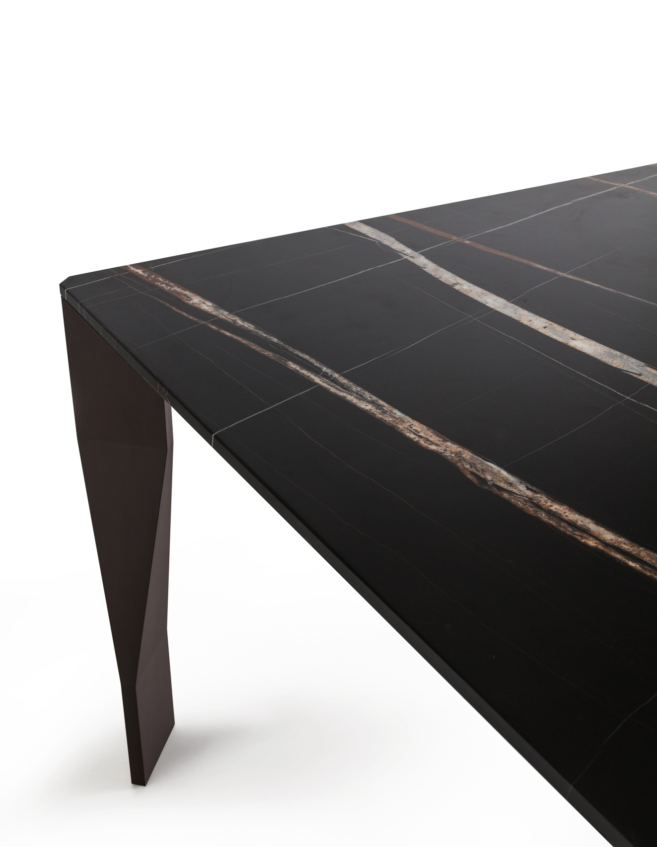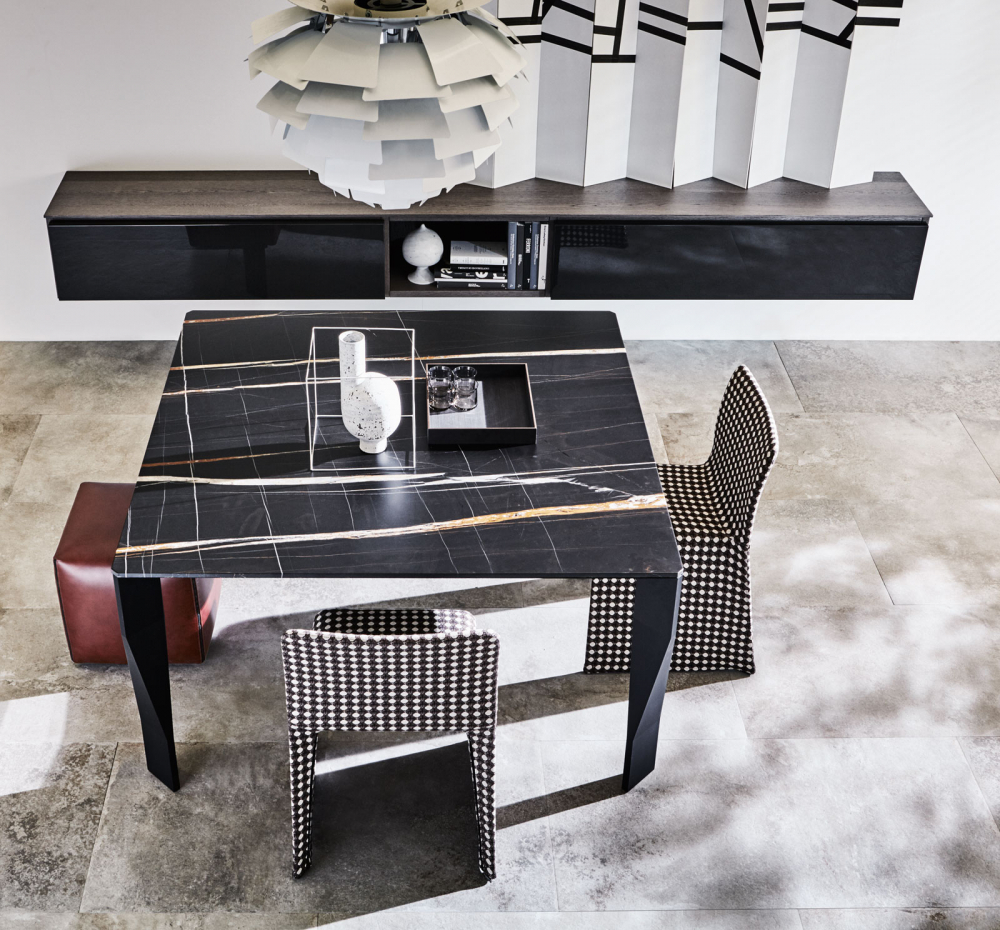 Een reeks tafels met gevouwen poten als een delicate origami. Een element dat vakkundig is geassembleerd door een licht gevouwen aluminiumfolie en een intern onderdeel bestaande uit aluminium en polyurethaan inzetstukken om stabiliteit te geven. De vierkante of rechthoekige bladen zijn verkrijgbaar in glas, de draagstructuur is ofwel glanzend aluminium ofwel glanzend gelakt. Diamond won in 2005 de Red dot design award Best of the best.