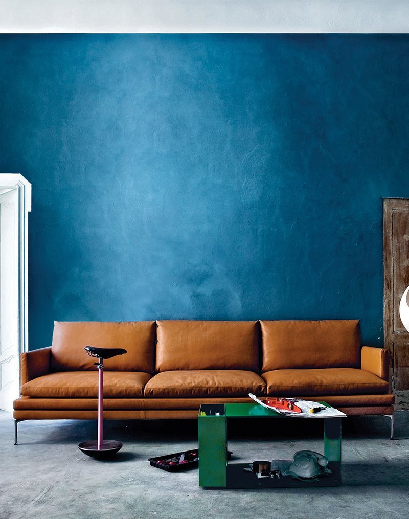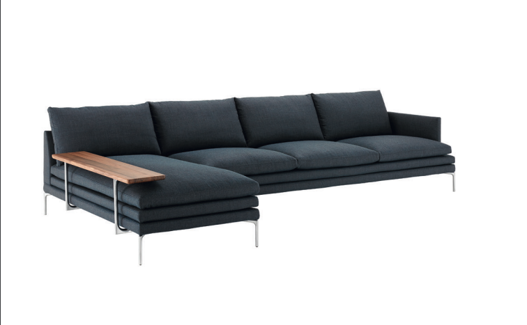 Fauteuil, monobloc, modulaire banken, poef, dagbed en planken. Voeten van aluminiumlegering, gepolijst of met natuurlijke of zwarte nikkel-satijn afwerking, of zwart gelakt. Stalen frame. Elastische strips ophanging. Bekleding in polyurethaan/warmtegebonden polyestervezel. Zit-, rug- en armleuningkussens bekleed met ganzendons. Afneembare stoffen of leren hoes. De fauteuils zonder armleuning en de eindsofa's zijn geschikt om een massief houten plank te plaatsen, in naturel of grijs geverfd eiken of in naturel geverfd Canaletto walnoot. Plankdragers in gepolijst, naturel of zwart nikkel-satijn afwerking, of zwart gelakt aluminium.